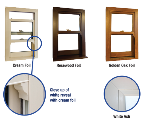 Colours and Woodgrain For those who prefer a true timber appearance, A.D.GLASS can supply the vertical sliding windows in White Ash, Cream, Rosewood and Golden Oak foils.